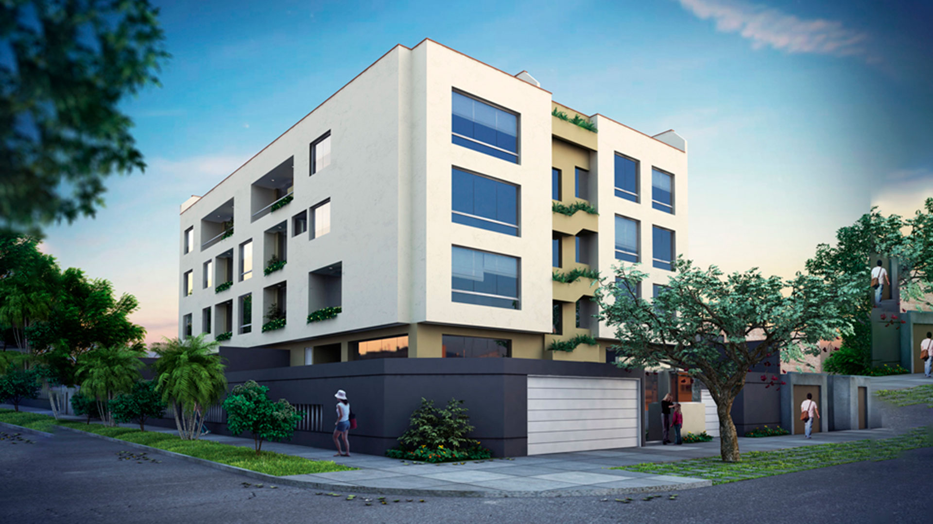 El proyecto consiste en un edificio de vivienda multifamiliar con semisótano, 6 pisos y azotea, con 50 departamentos, a razón de 8 departamentos del primer piso al quinto piso y 10 departamentos en el sexto piso. Los departamentos duplex están ubicados en el sexto piso, ocupando dos niveles (sexto piso y azotea), cada uno con acceso al nivel superior a través de una escalera interna.
