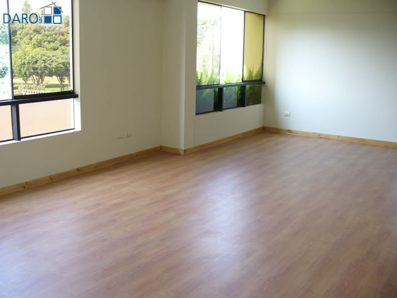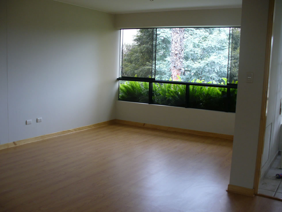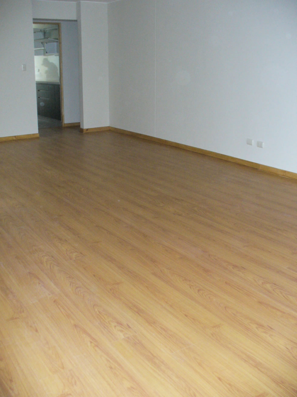Piso laminado en sala-comedor, hall y dormitorios.
