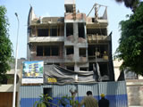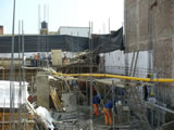 Muros y puertas de madera en el perímetro del edificio.