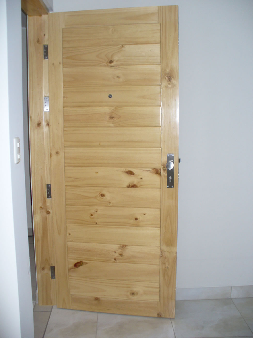 Puertas principales machihembradas con chapa de seguridad.
