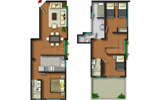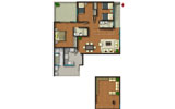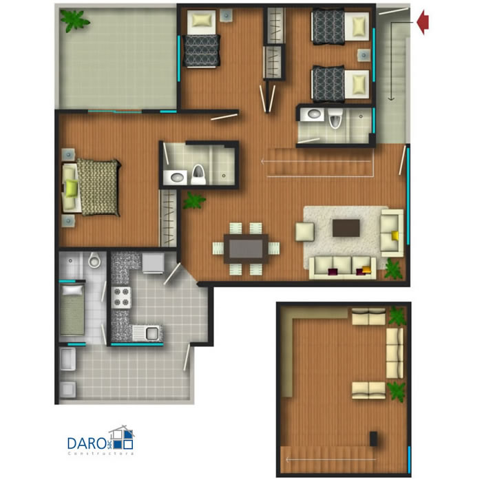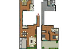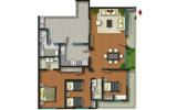 Departamento tipo2 del segundo al tercer piso con 107.44 m2. Consiste en sala-comedor, 3 dormitorios, baño principal incluido en el dormitorio principal, baño secundario, cocina, patio-lavandería, cuarto de servicio y baño de servicio.