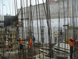 Muros y puertas de madera en el perímetro del edificio.