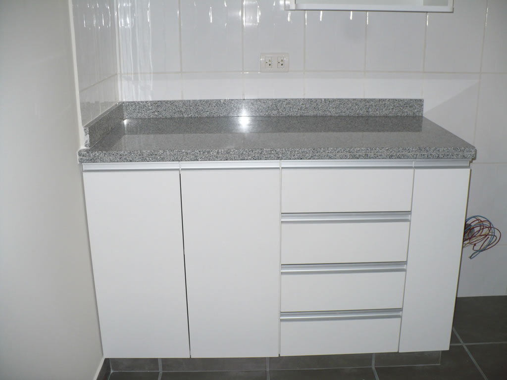 Muebles de cocina en melamina diseñados con muebles altos y bajos.