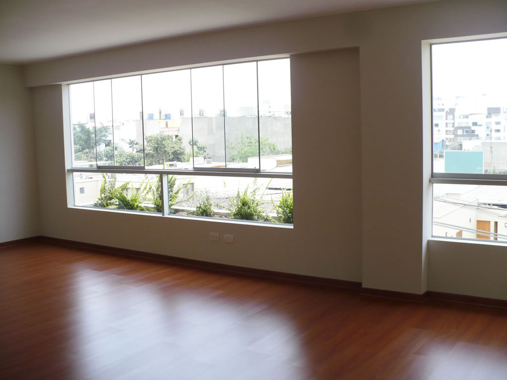 Departamento 103 del primer piso con 137.82 m2 de área techada y 30.48 m2 de área libre. Consiste en recibo, sala-comedor, baño de visita, cocina, patio-lavandería, cuarto y baño de servicio, 3 dormitorios, baño principal incorporado en el dormitorio principal, baño secundario, 2 patios interiores.