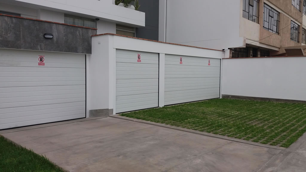 El ingreso a los estacionamientos individuales frente al Jr. Paseo Libertad, es mediante una puerta seccional, con control remoto.