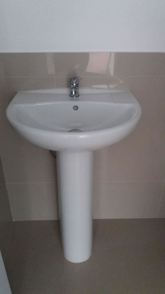 Inodoro One piece y lavatorio con pedestal para los baños secundarios (S.H.2 y S.H.3).