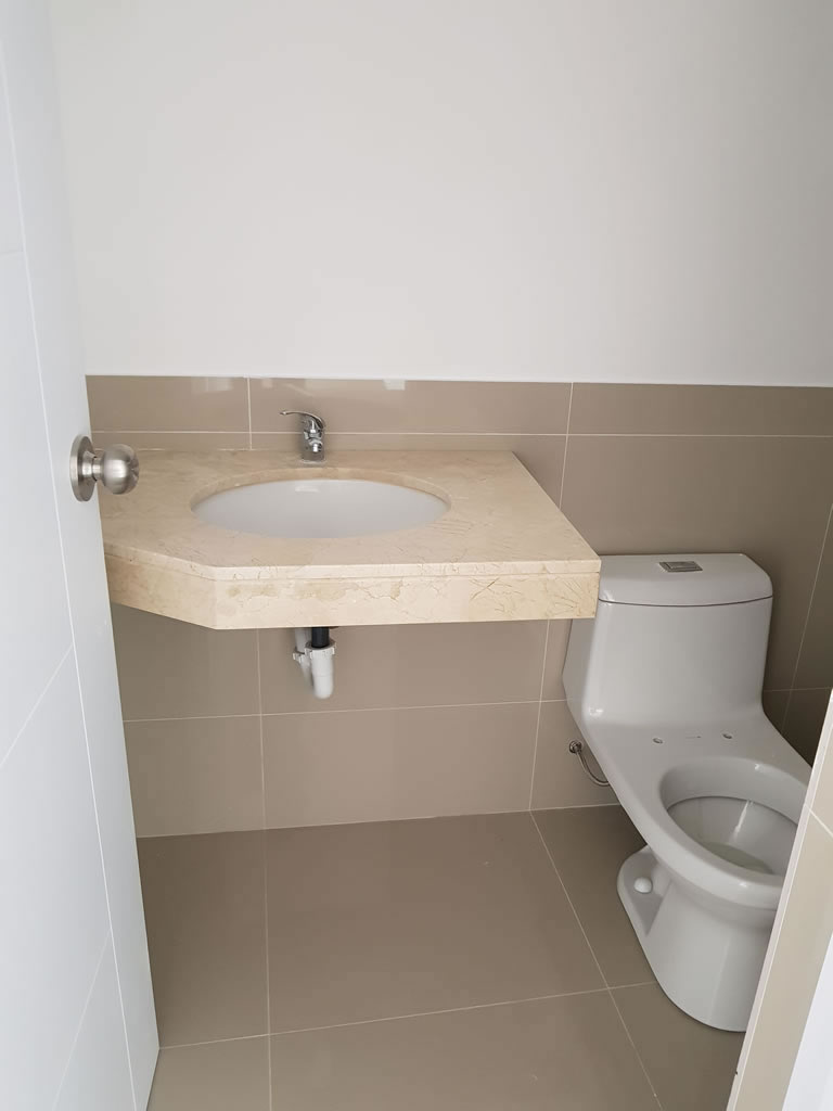 Baño de servicio en los departamentos 102, 202, 302, 402, 502, 602.